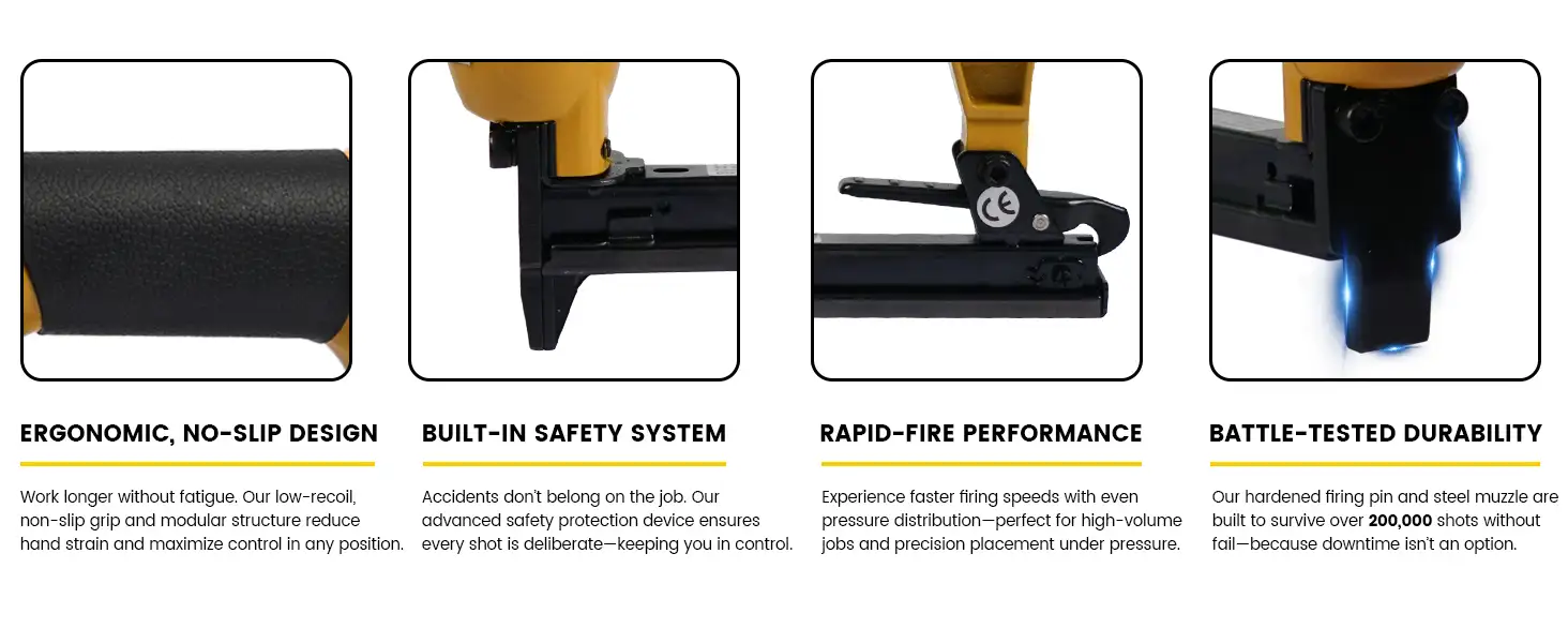 Powerful & Reliable: Offers consistent driving force with excellent nail power for both softwood and hardwood applications.