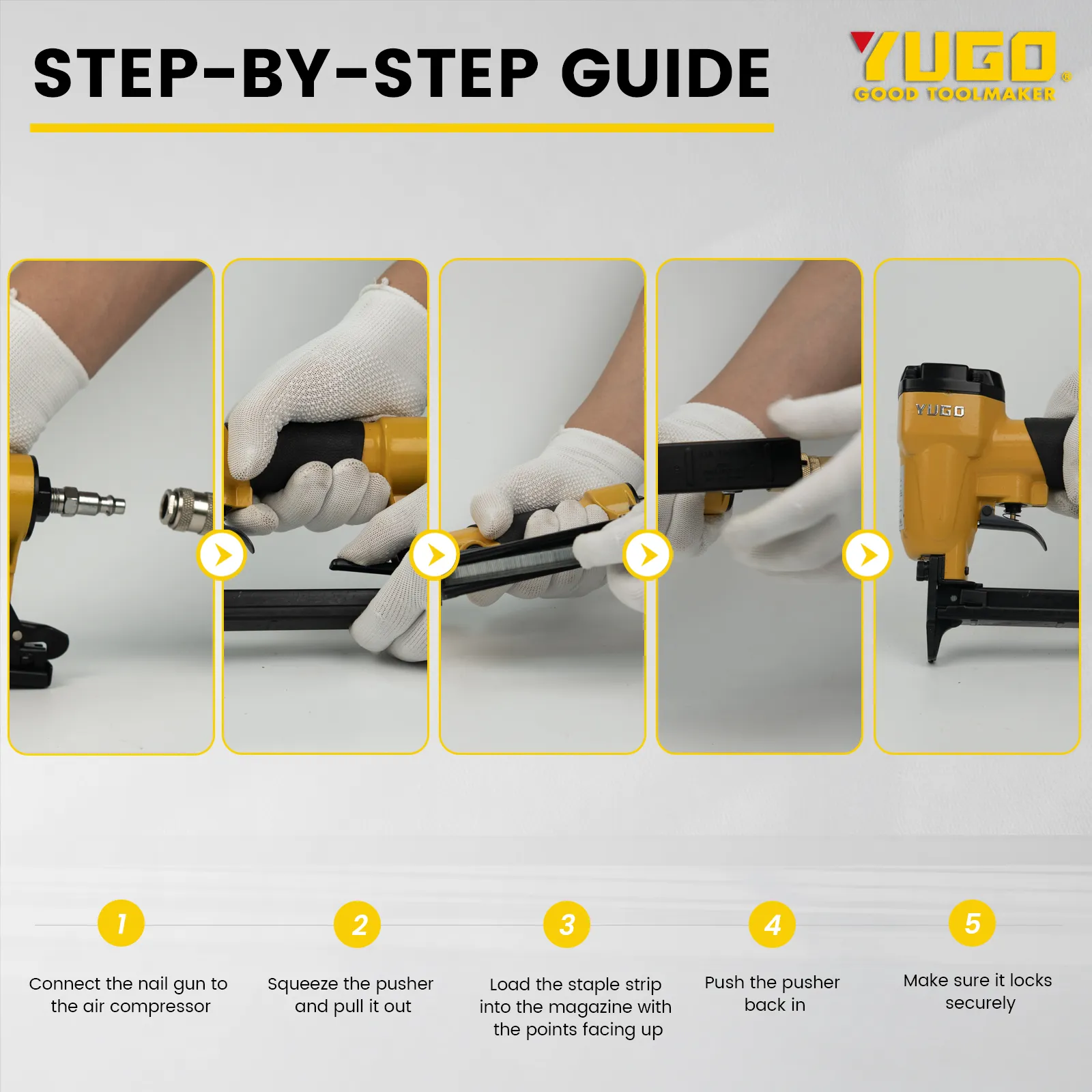 Q: Can you put different size nails in a nail gun? A: Only nails that are within the specified length and gauge range of the nailer can be used safely. For the 8016-A1 nailer, nails between 18–64mm are compatible. Using nails outside this range can cause jams, misfires, or damage to the nail gun.