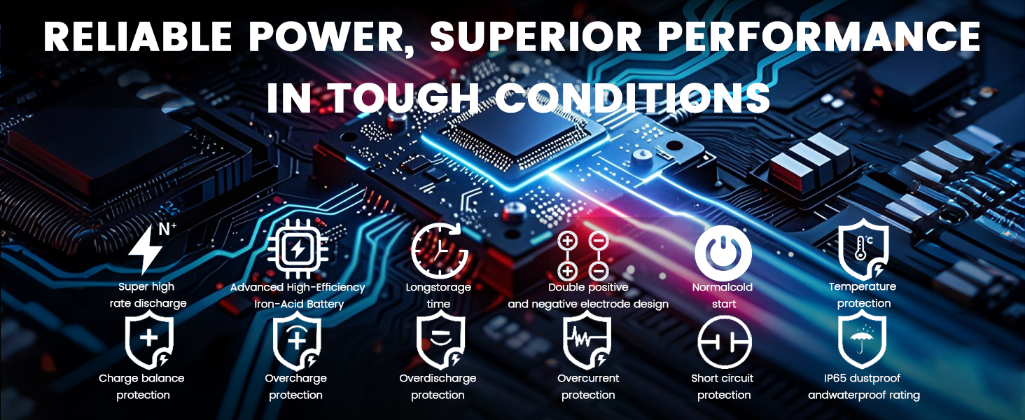 The LP7’s low self discharge rate means it’s ready to go even after long periods of inactivity—perfect for seasonal riders. A built‑in Battery Management System (BMS) protects against overcharge, over‑discharge, overcurrent, and short‑circuit conditions. Auto‑cutoff and quick reactivation preserve battery health without the need for high‑voltage jumpstarts.
