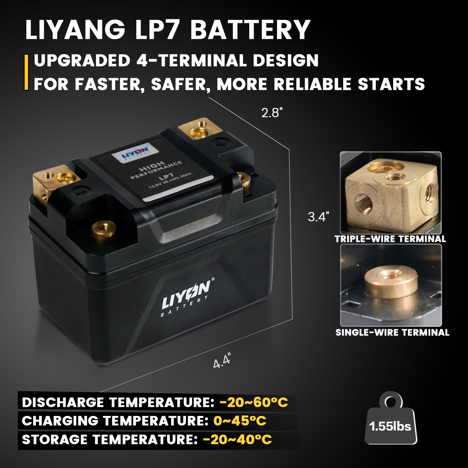 The LP7 delivers rugged performance in a compact 3AH lithium build—offering more starts, deeper cycles, and significantly longer service life than traditional lead‑acid batteries. Engineered for riders who face both blistering heat and extreme cold, these wide temperature range batteries are built to power your adventures year‑round.