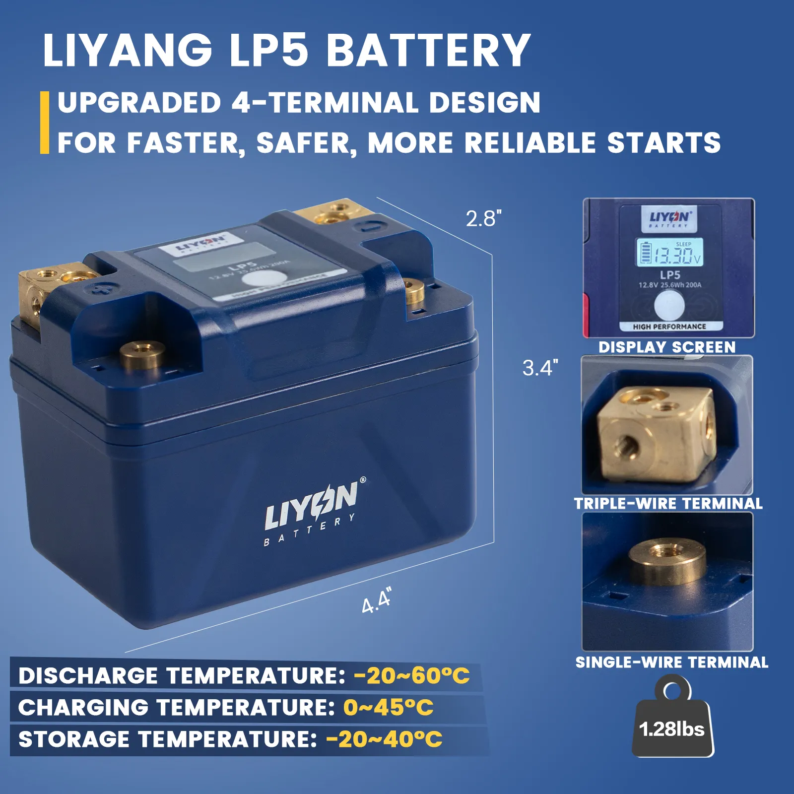 Engineered for performance and value, the LP5 delivers cost effective power with the punch to handle demanding starts and long rides. Its advanced lithium technology provides more starts, deeper discharge recovery, and up to 5× the lifespan of traditional lead‑acid batteries—all in a lightweight package that won’t slow you down.