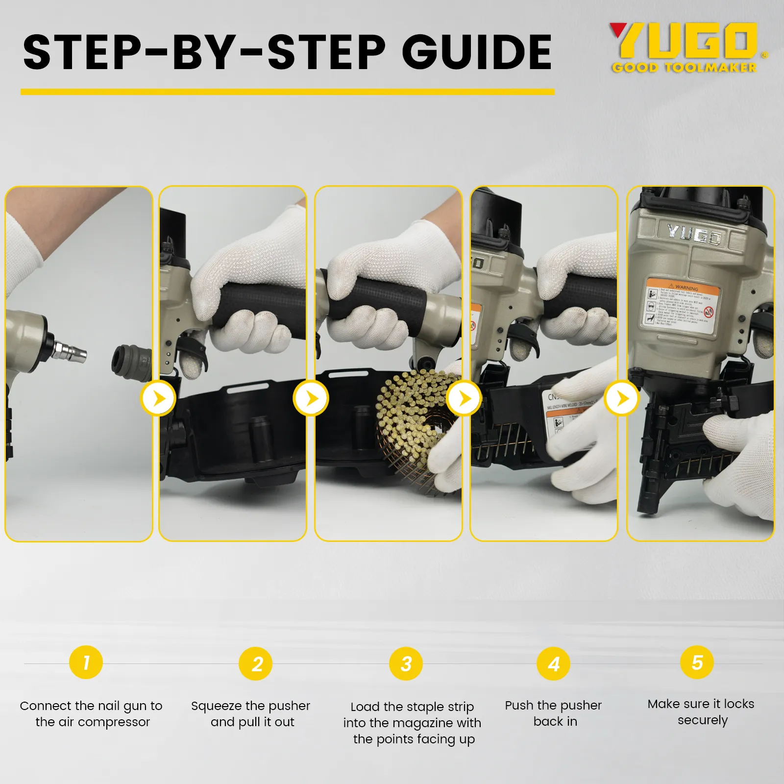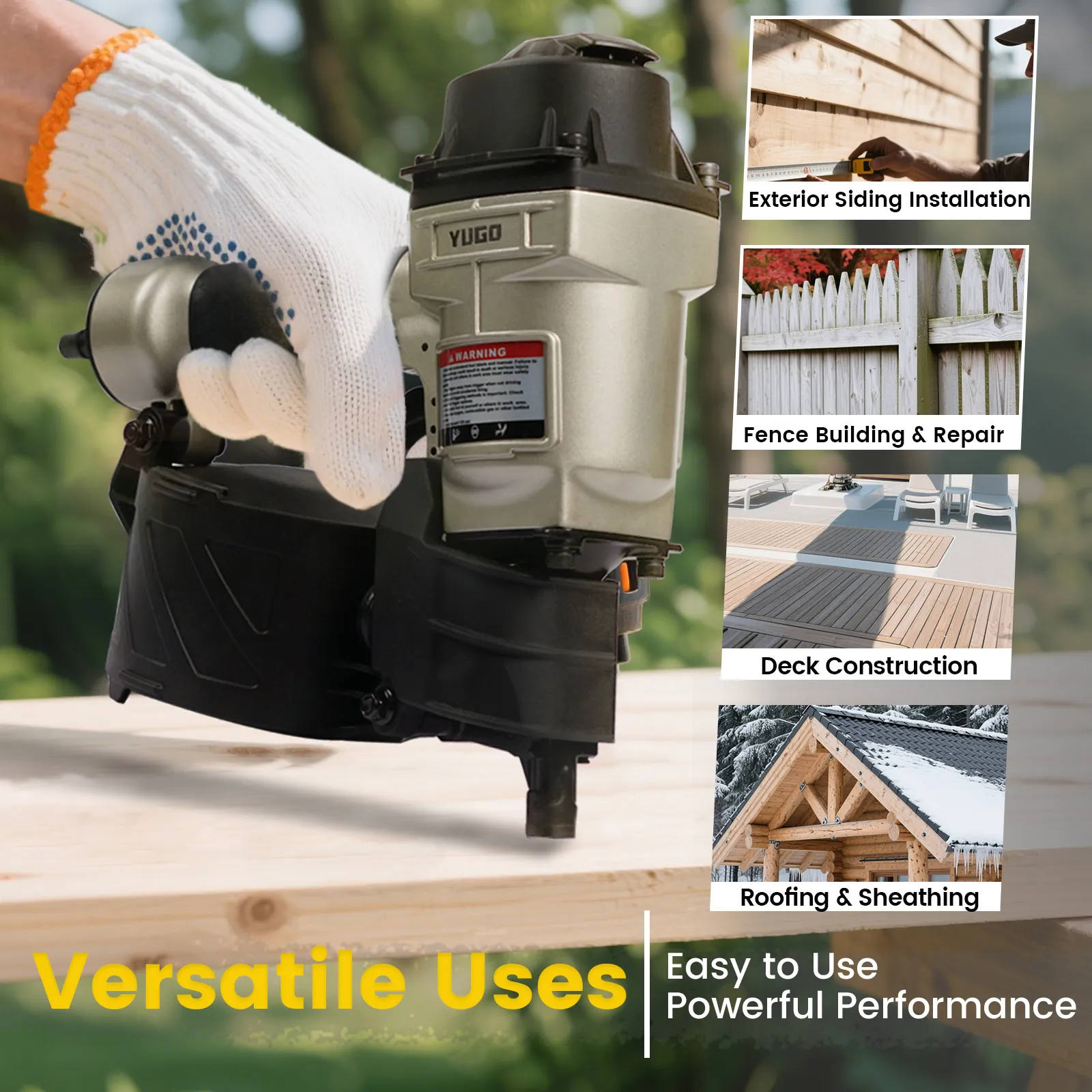 Versatile Nail Compatibility Accepts a wide range of nails (2.1–2.5mm) and supports coil loads of 250–400 nails, making it suitable for siding, decking, and framing projects.