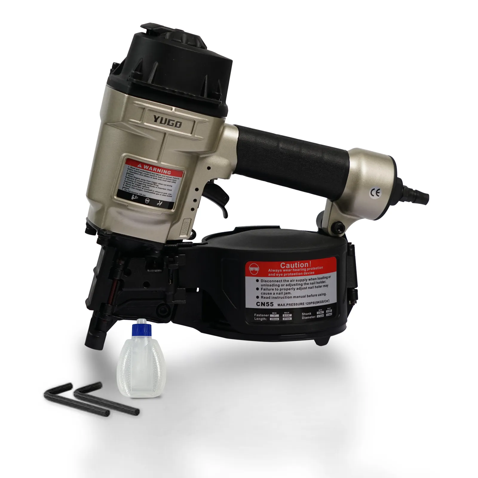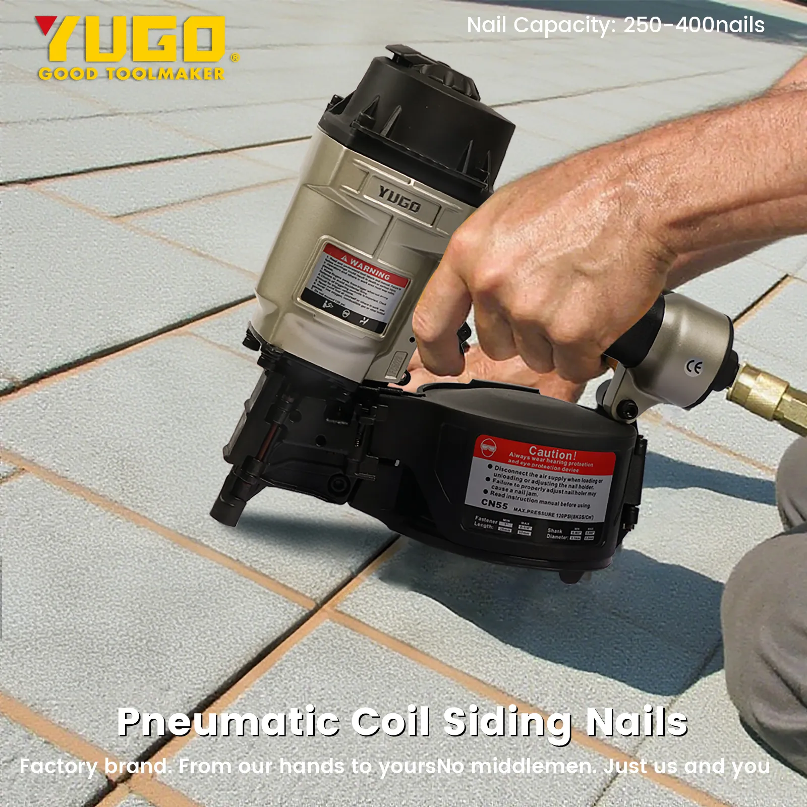 A: The best nail gun for siding is a coil siding nailer like the CN55. It delivers consistent nail power, handles nails sized 2.1–2.5mm, and supports high-volume applications, making it ideal for wood siding, decking, and framing projects.