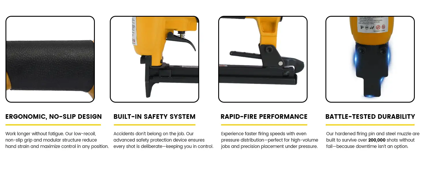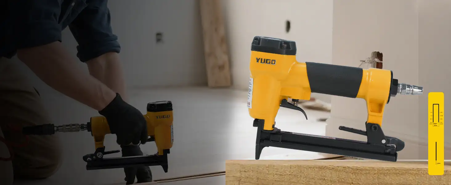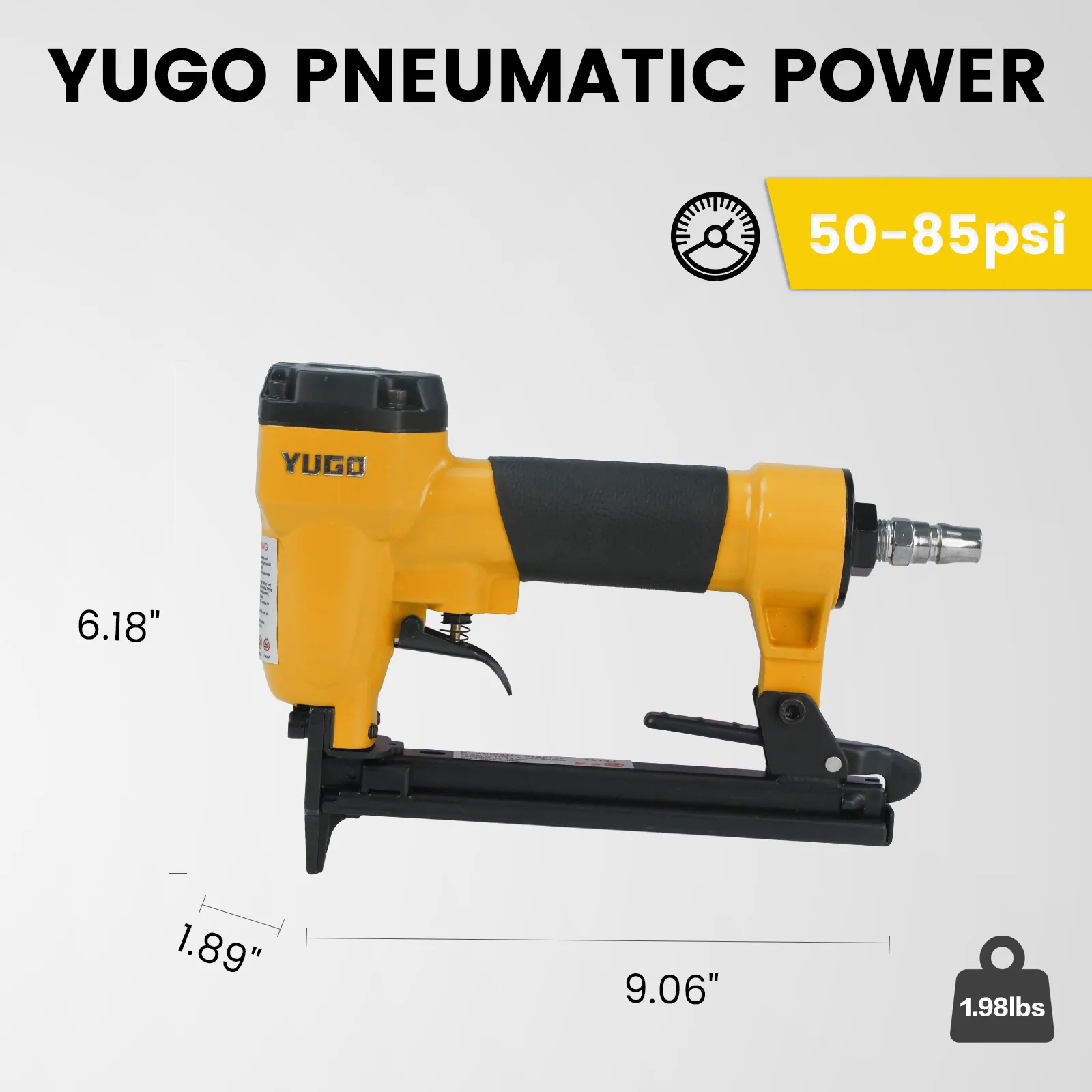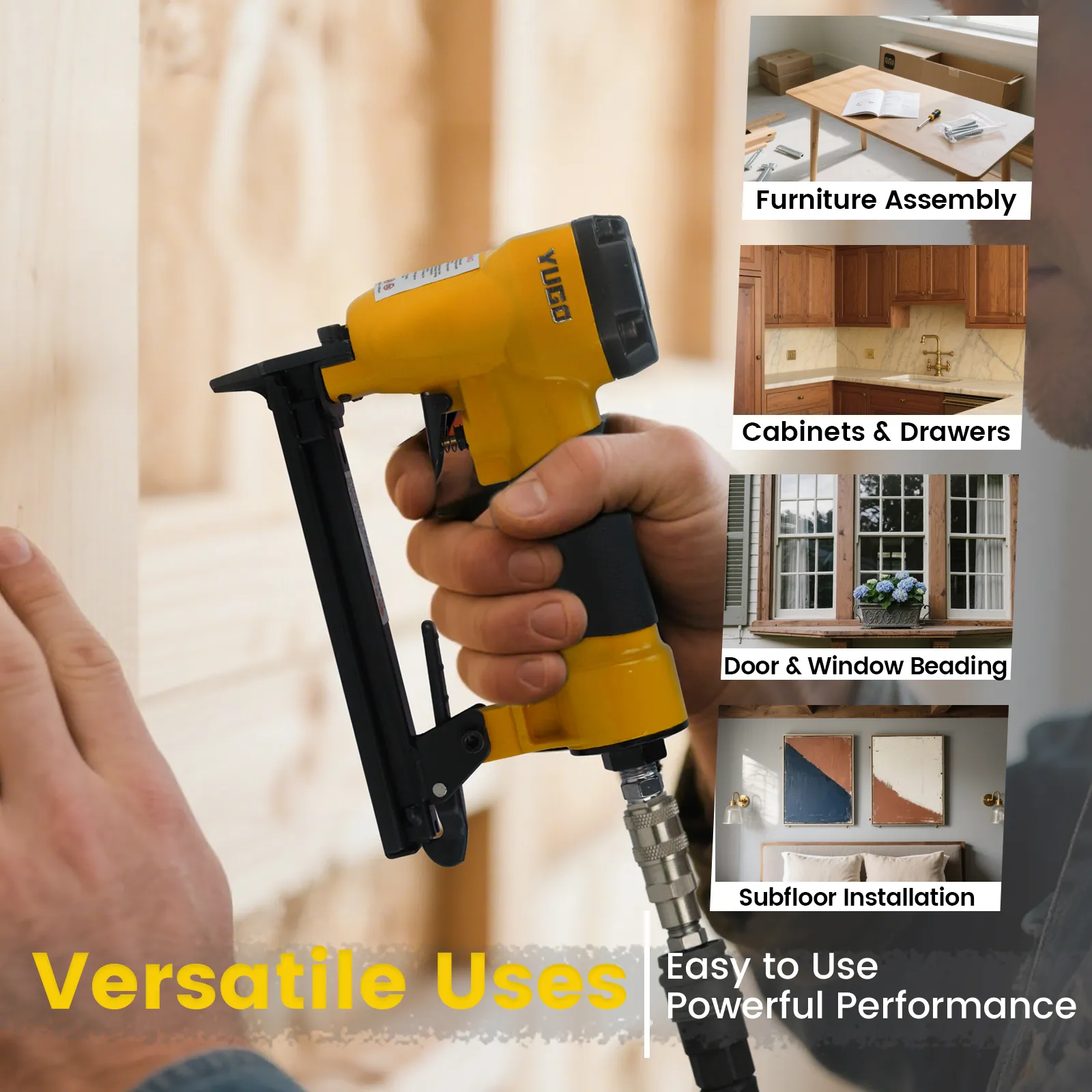 The YUGO F1013-A1 brad nail gun is a reliable pneumatic brad nailer built for both DIY projects and professional applications. Engineered for durability, precision, and ease of use, this versatile tool works seamlessly with F1013-A1 nails for gun as well as staples, making it ideal for wood framing, trim, cabinetry, and furniture assembly. With a focus on nailer quality, reliability, and smooth nailing function, the F1013-A1 ensures every project is completed with confidence.