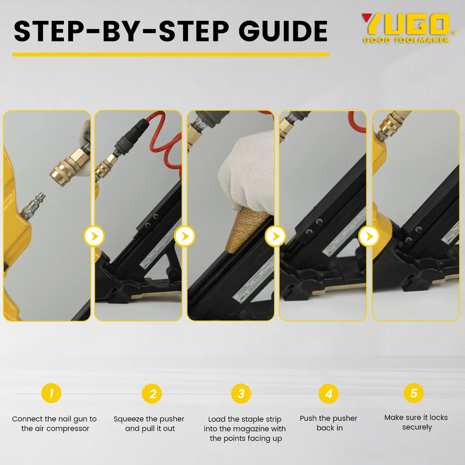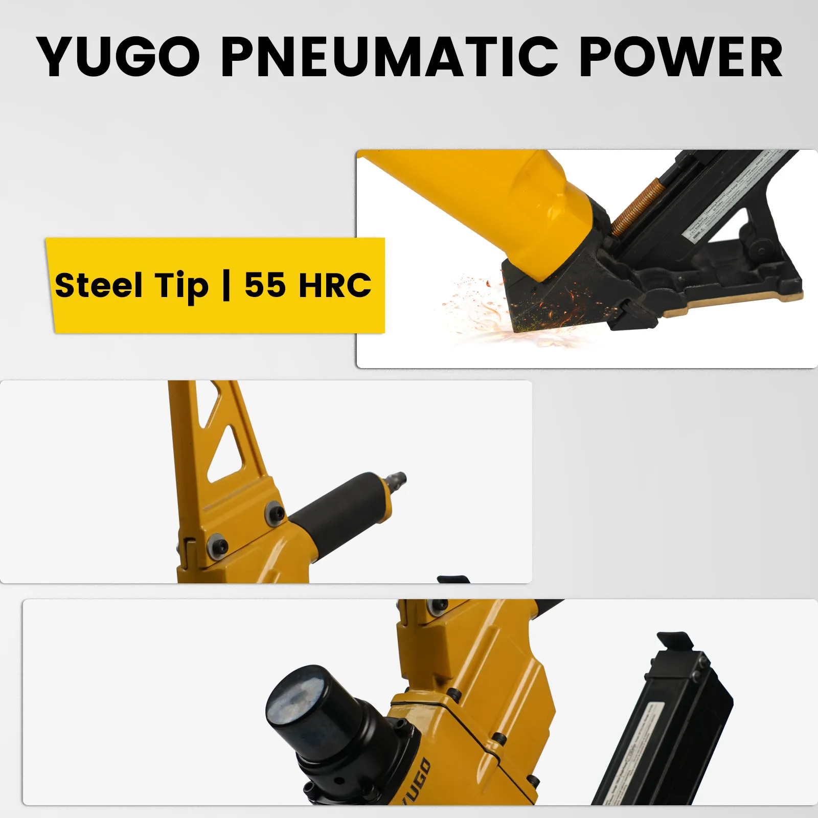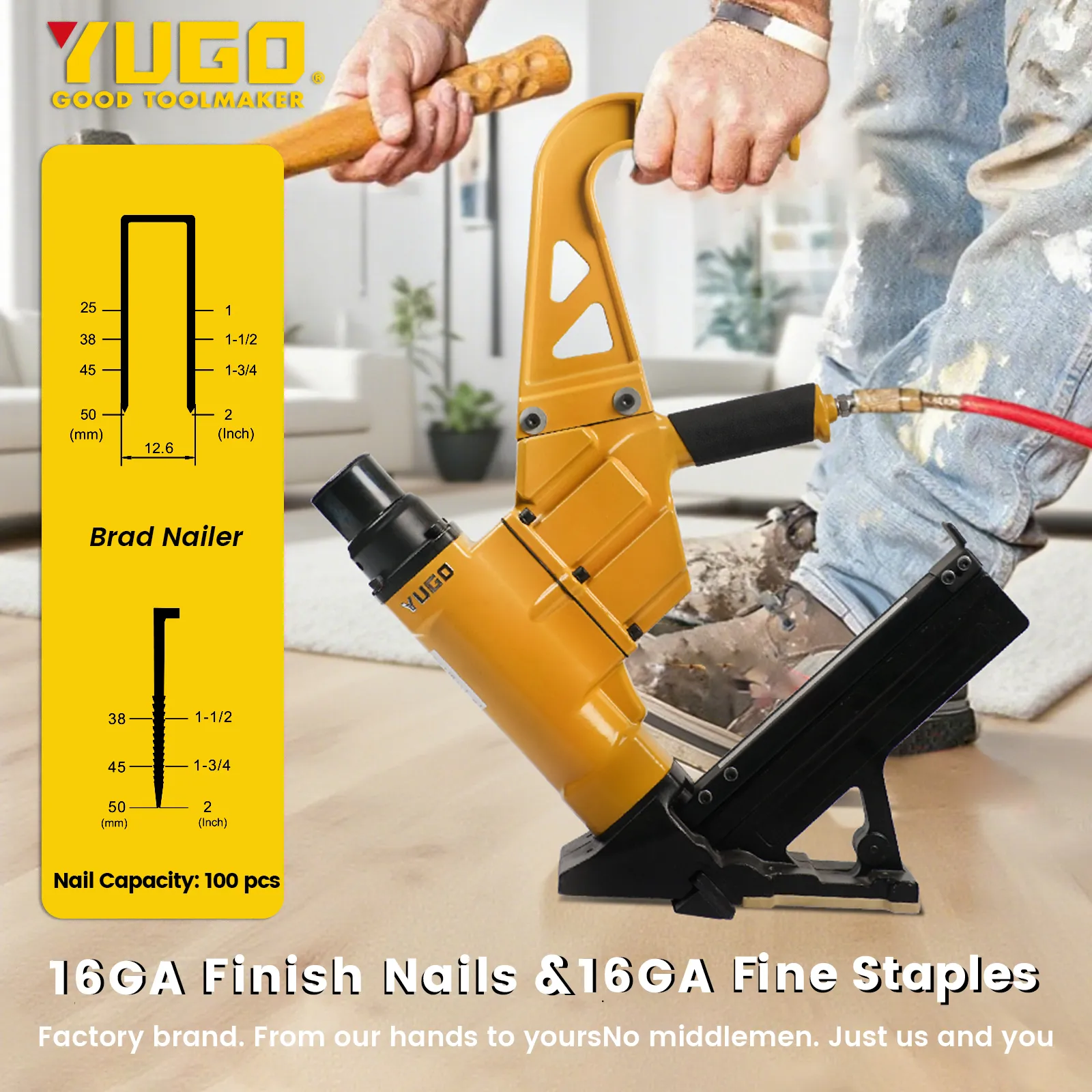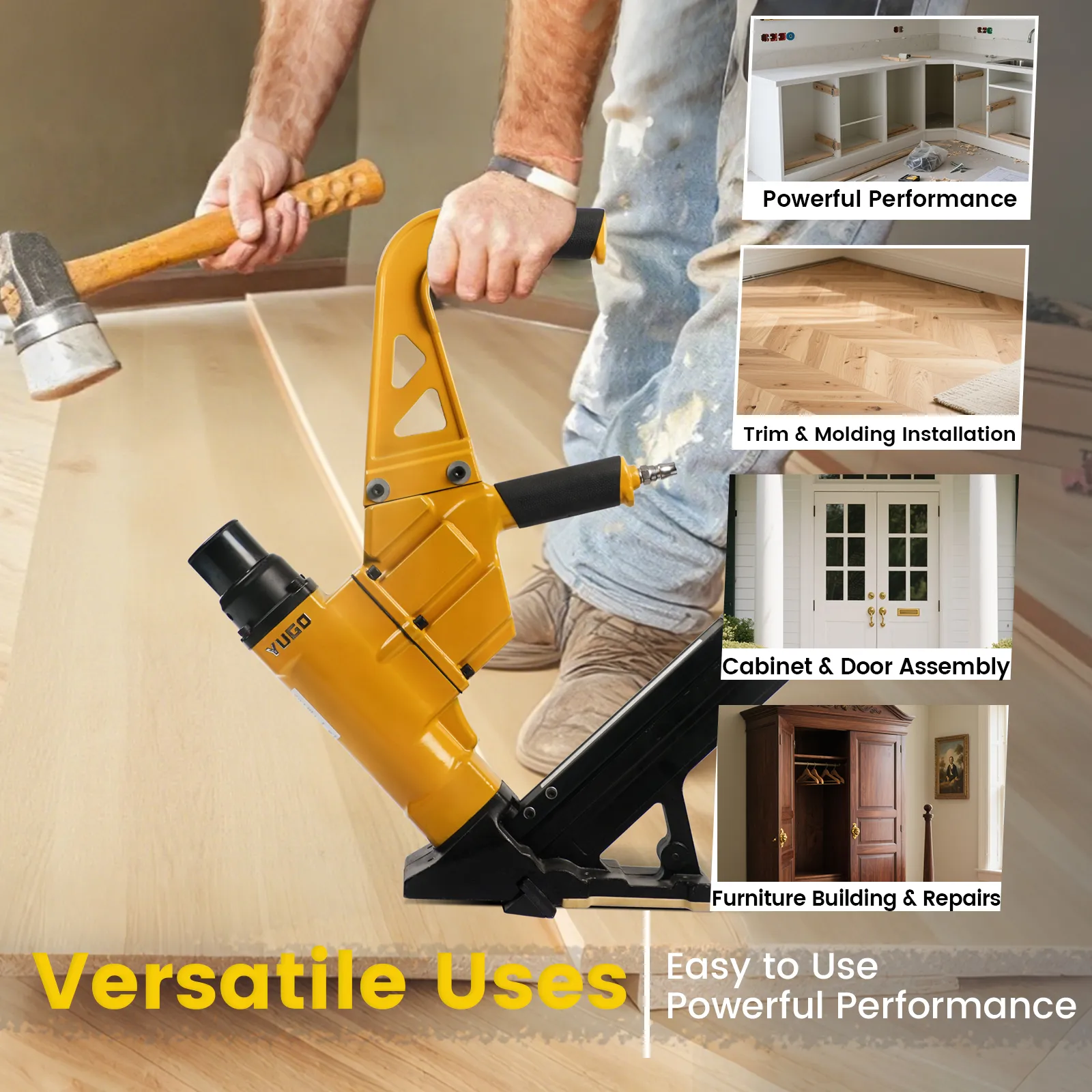 The YUGO FCN51 flooring nailer is built for serious wood flooring projects, delivering reliability, durability, and precision with every shot. Designed for wood framing, furniture assembly, and flooring installation, it supports FCN51 nail gun nails and ensures consistent nailing function across hardwood, engineered wood, and bamboo. With features like Anti-Dry Fire Lock, jam-resistant performance, and a user-friendly design, this FCN51 flooring nailer offers professional-grade results while remaining easy to use—making it a favorite for both DIYers and contractors who demand value for money.