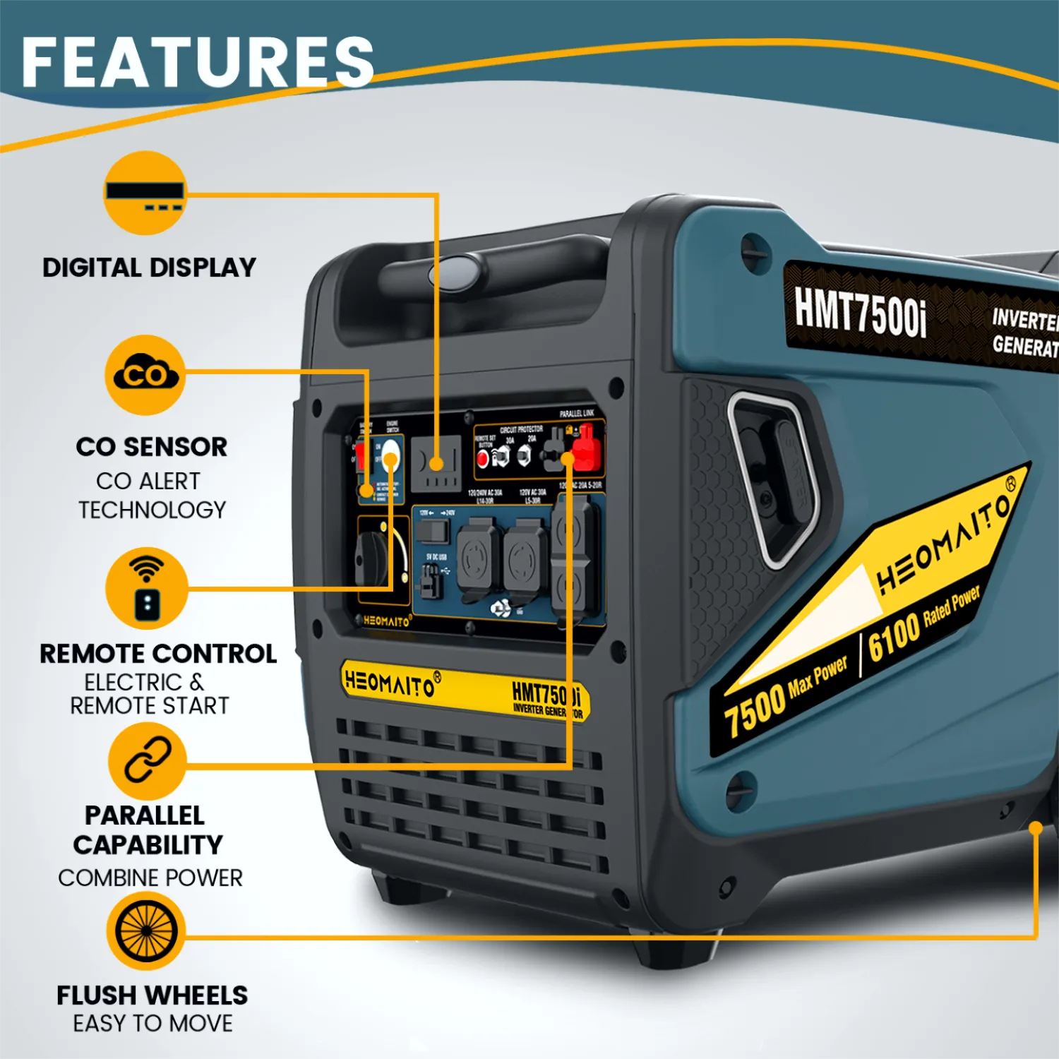 Heomaito — Inverter Generators, Nail Guns & Motorcycle BatteriesHeomaito ShopGeneratorBackup Generator for HomeHMT7500i 7500W Inverter Generator for House
