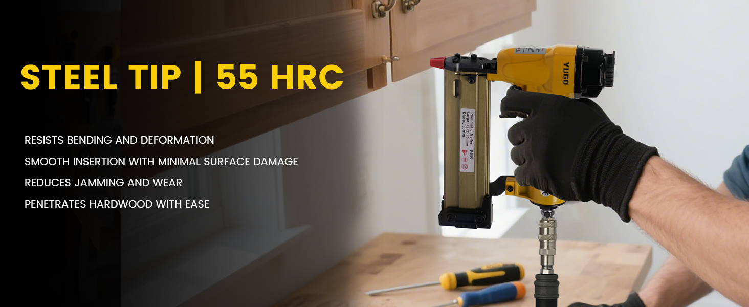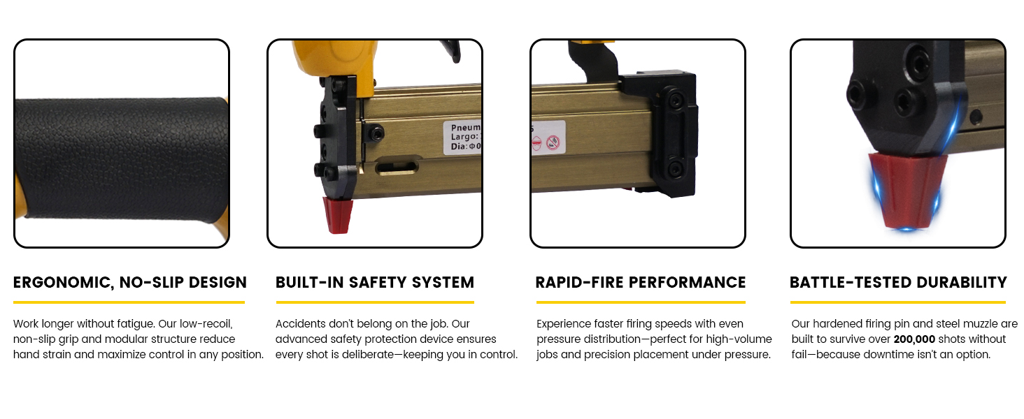 [ Anti-Dry Fire Lock ] Keeps your work surface safe by preventing empty shots. This feature reduces wear on the tool and eliminates unnecessary marks on wood.