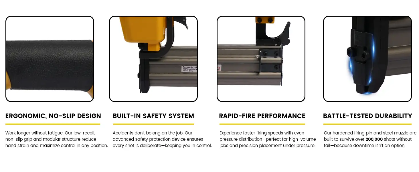 High Efficiency & Reliable Functionality: Rapid firing capability reduces installation time, while precision engineering minimizes jams and ensures consistent nail placement for professional results.