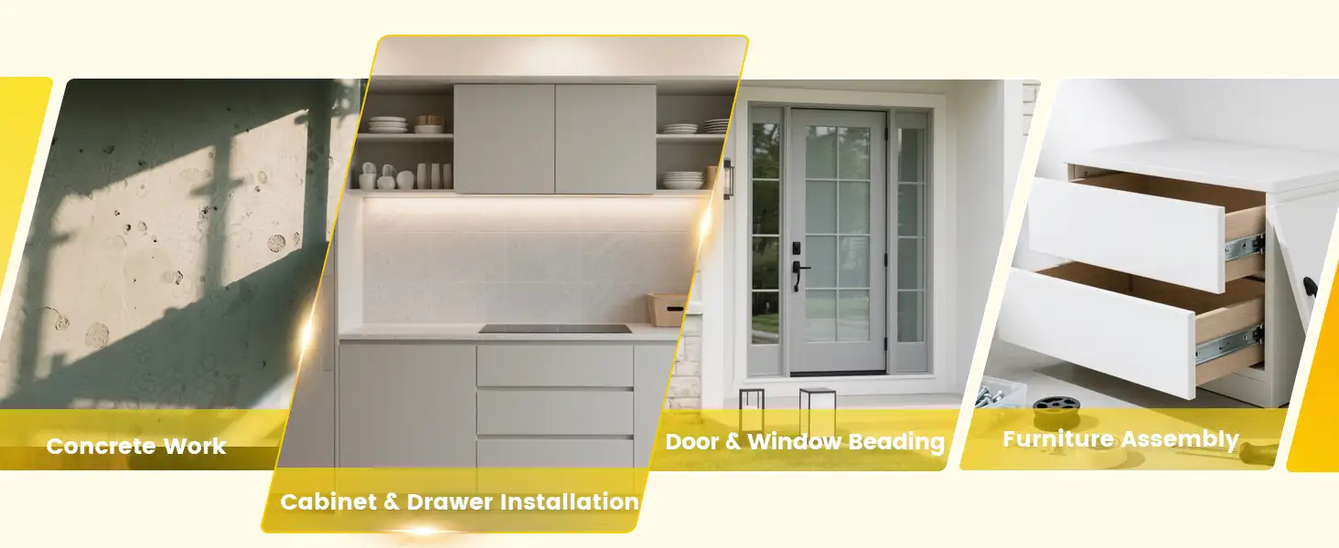 | Applications | Concrete, Furniture, cabinets anddrawers assembling, doors and windows, beading, decorative trims |