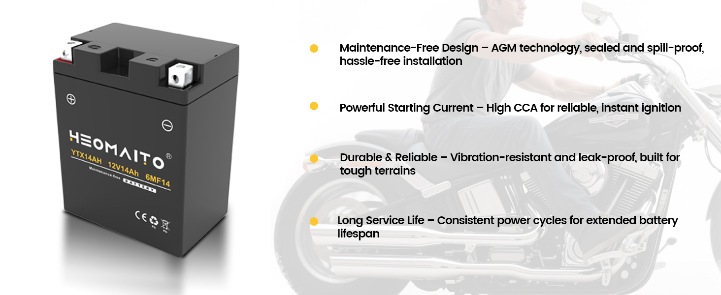 YTX14AH 14AH 12V Motorcycle Battery – Dry Charge Power for Kawasaki & Kymco | Heavy‑Duty Performance