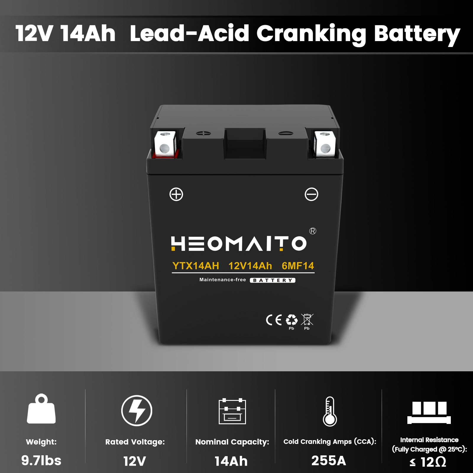 High-Performance 12V 14Ah Power: Engineered for consistent starts and long-lasting energy output, delivering more CCA than standard lead-acid options.