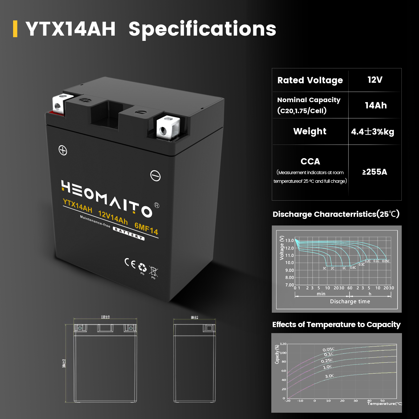 YTX14AH 14AH 12V Motorcycle Battery – Battery for Kawasaki