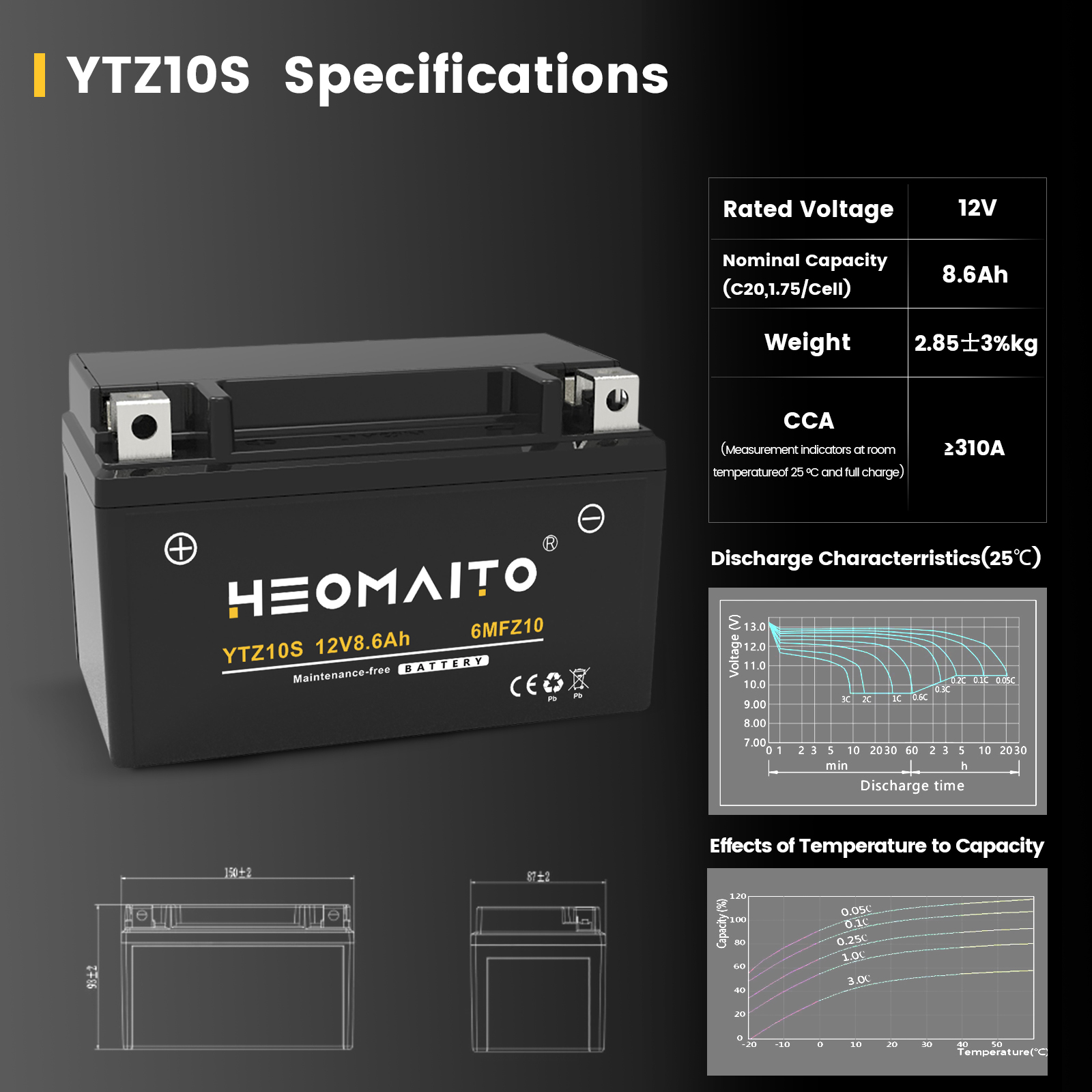 | CCA(Measurement indicators at room temperatureof 25 °C and full charge) | ≥310A |